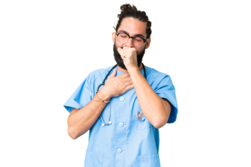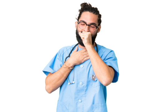 Young doctor man over isolated chroma key background is suffering with cough and feeling bad