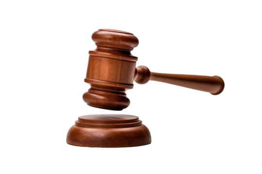 A wooden gavel and sound block, representing justice, law, and legal proceedings