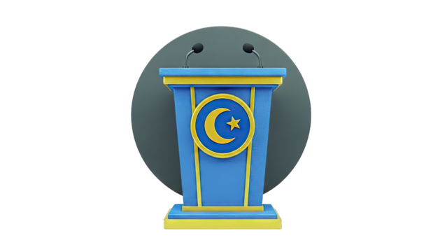 Blue and Gold Lectern with Crescent Moon and Star Symbol