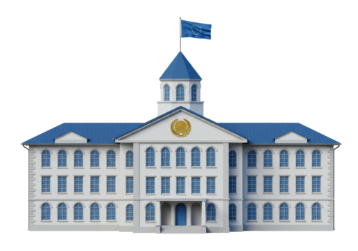 Isolated governmental building with European Union flag on top, three-story construction