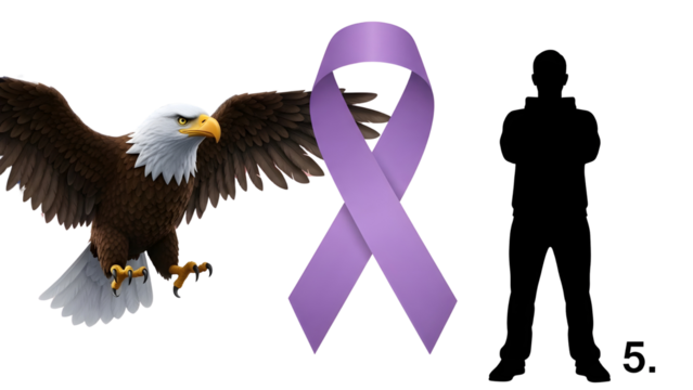 Patriotic bald eagle with purple awareness ribbon and strong male silhouette advocating support isolated PNG with Transparent Background