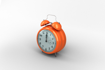 Orange vintage alarm clock on transparent background