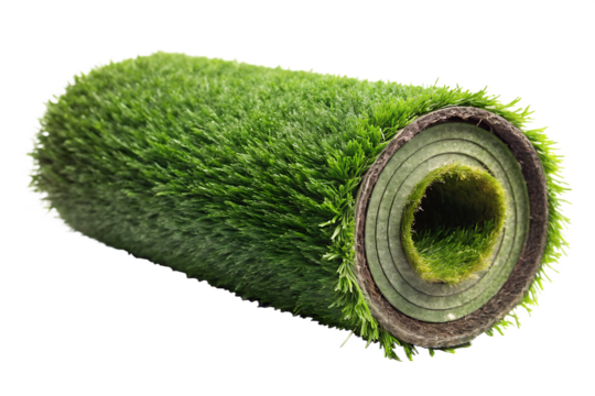 Rolled Artificial Grass Turf with Visible Layers on Background fake grass synthetic turf isolated on a transparent background
