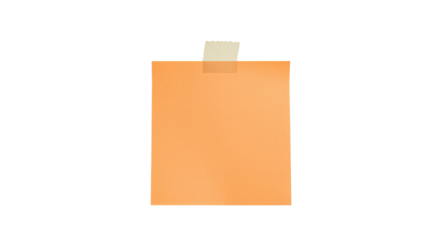 Square orange sticky note with a piece of torn tape at the top. Isolated on transparent background, png