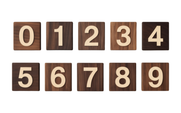Elegant wooden blocks display numbers zero through nine, perfect for educational or design projects