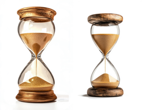 Classic hourglass with falling sand measuring passing time, isolated on transparent background, perfect for time management concepts