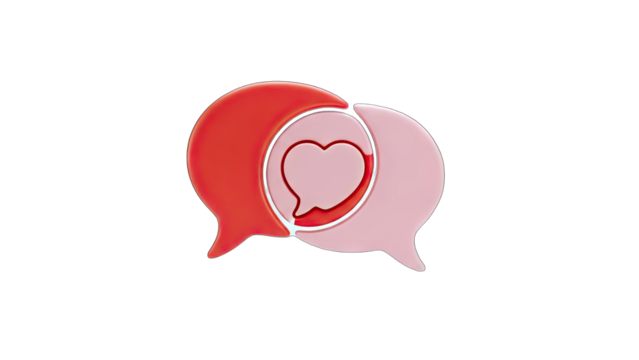 Colorful 3d chat bubble icon with bold heart on transparent background