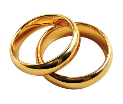 Gold wedding rings isolated on transparent background