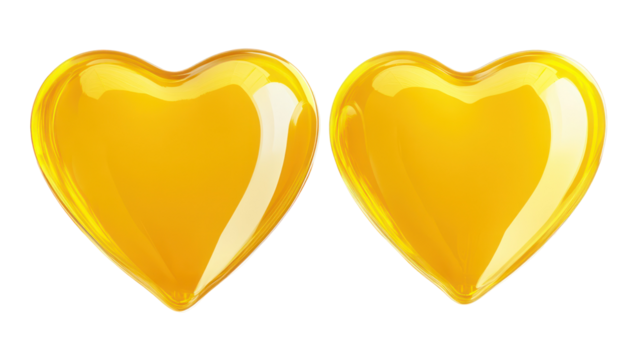 Golden hearts, valentine love, romantic symbols, isolated on transparent background