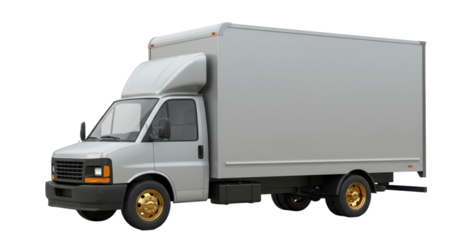 Isolated White Delivery Box Truck with Gold Wheels