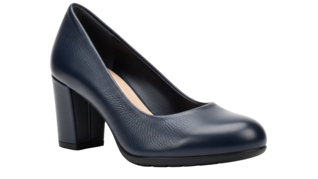 Elegant navy blue leather women s pump shoe isolated PNG, classic footwear for professional or formal occasions on transparent background