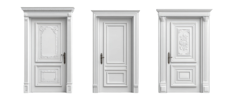 Three classic white doors with decorative trim