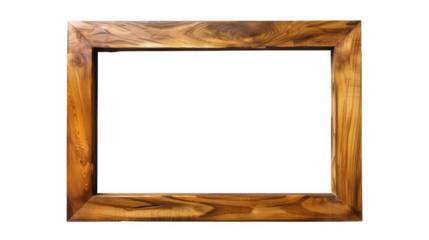 Rustic empty wooden picture frame featuring rich warm grain and natural live edge style borders on transparent background