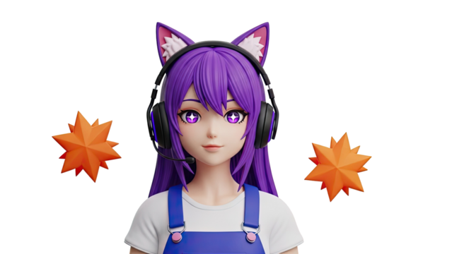 Anime Girl with Cat Ears and Headphones