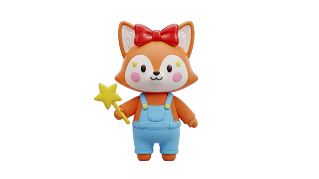 Cute Fox Toy with Star Wand and Red Bow