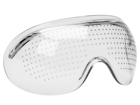 Clear perforated plastic eye shield for post-surgery protection on a transparent background