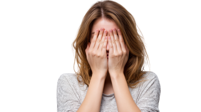 Person covering face with hands isolated on transparent background