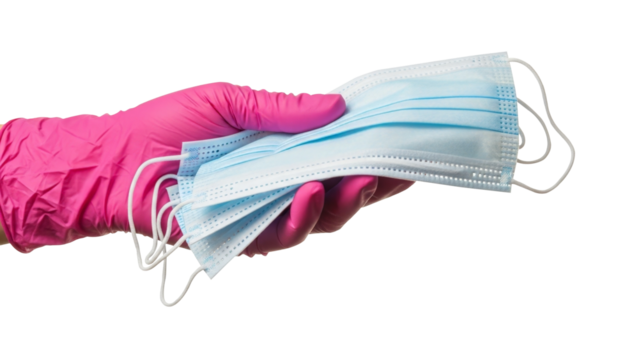 Man Wearing Surgical Mask and Protective Clothing. On a Transparent Background.