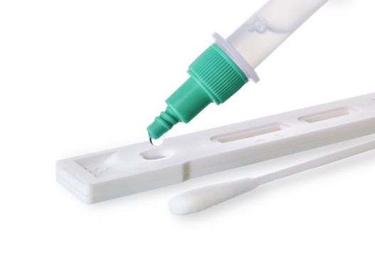 Medical Technologist holding swab for Covid-19 New Variant test at medical laboratory.