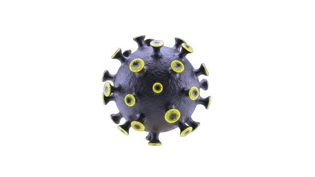 Virus covid-19 in a 3d rendering illustration with a transparent background, representing a global pandemic