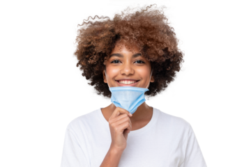 Mask off. Portrait of smiling african american school girl after end of pandemic