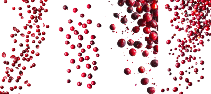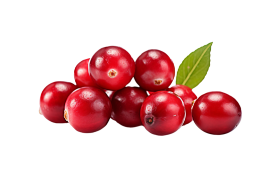 Freshly picked cranberry isolated on transparent background for culinary projects, holiday recipes, and organic food illustrations featuring vibrant red berries
