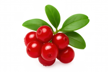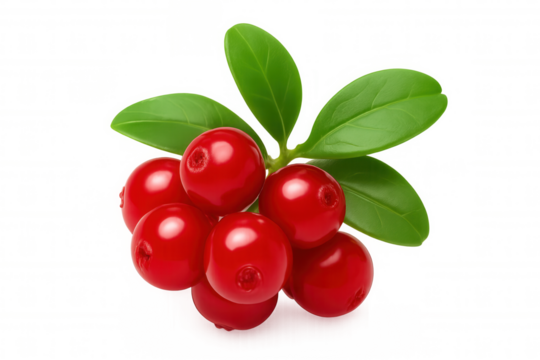 Fresh lingonberries with green leaves, isolated on transparent background, perfect for healthy eating and natural food concepts