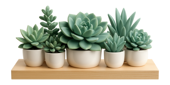 Cluster of faux succulents on a wooden shelf for a coworking space lounge area