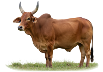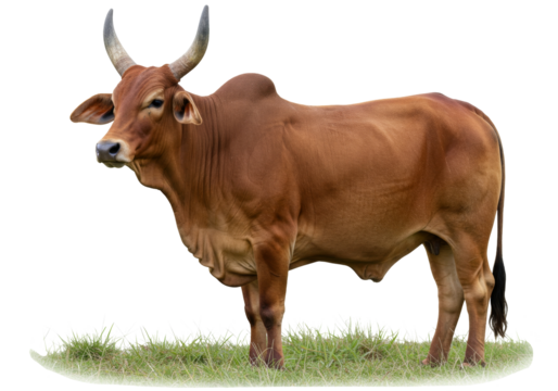 Brown and White Cow Grazing on Lush Green Grass – Side View, Isolated PNG