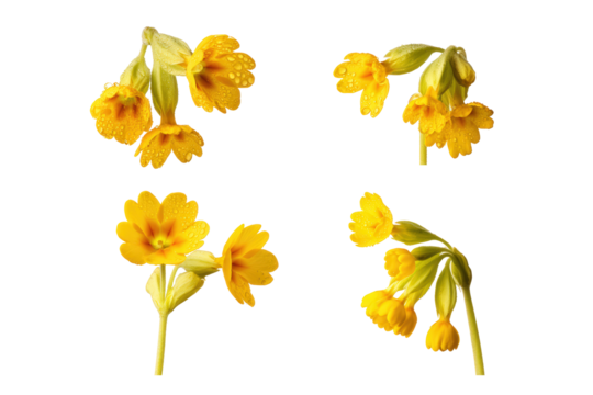 Cowslip Plant Set of Three Different Poses on Transparent Background for Garden, Floral Branding, or Nature-Inspired Decor