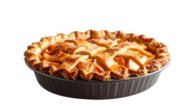 Recipe inspiration baking a cozy apple pie in a home kitchen with delicious food photography isolated on transparent background