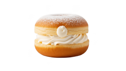 White cream iced mini donuts with colorful sprinkles on transparent background