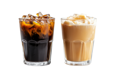 Black ice coffee and ice latte on white background,png