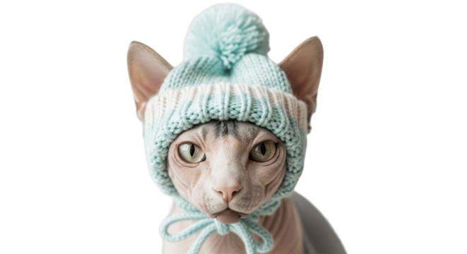 Adorable kitten cozy in a knitted hat, perfect for cute, whimsical, or holiday-themed design projects