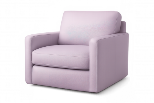 Lilac armchair with modern design isolated on transparent background, perfect for interior design projects