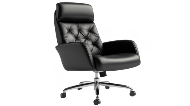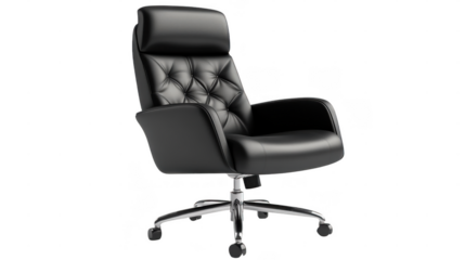 Stylish black leather chair with tufted design and chrome base, ideal for any home or office