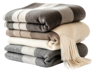 Cozy blanket with plaid pattern isolated on transparent background soft textile for winter comfort, perfect for promoting warmth, relaxation, and cozy indoor moments.
