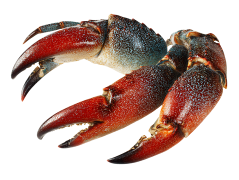 Delicious red crab claw isolated on transparent background studio shot.