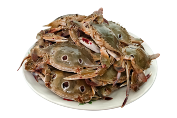 Invasive and aggressive blue crab in transparent background, used for many shellfish recipes