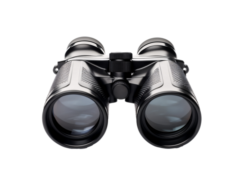 a black binoculars with a white background