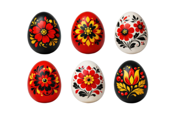 Decorated Easter eggs with vibrant floral designs for spring holiday celebrations Alpha channel with white background