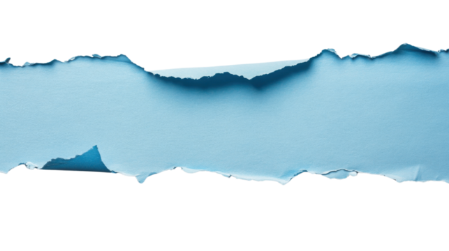 Torn light blue horizontal paper strip with transparent background revealing checkered pattern