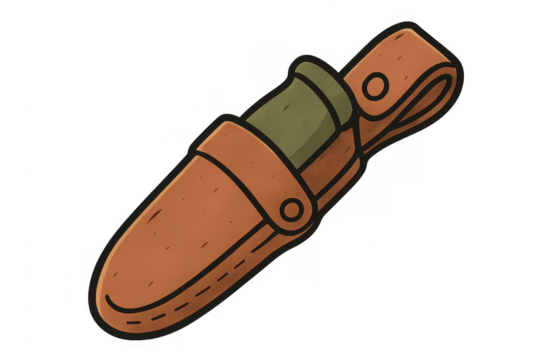 3D Hunting Knife with Leather Sheath on transparent background