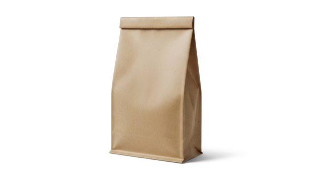 Brown paper bag isolated on transparent background mockup