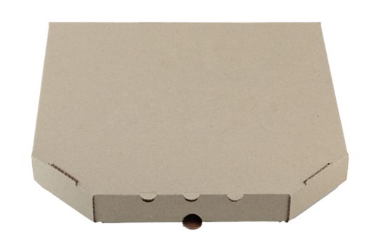 Craft pizza box isolated on transparent background. Cardboard packaging for delivery or branding design, eco-friendly and perfect for restaurant presentations