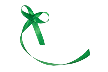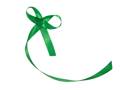 Promoting Awareness Initiatives: Green Ribbon Bow on Transparent Background for Fabric Ribbons Supporting Community and Social Causes.