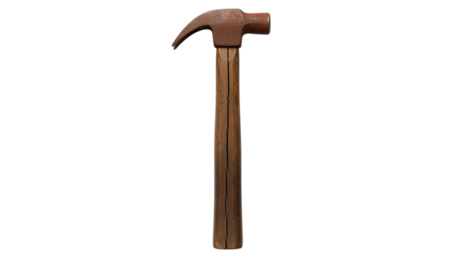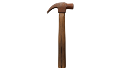 a brown hammer with wooden handle on transparent background