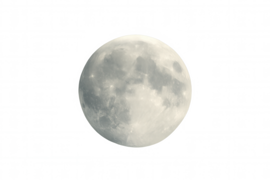 Full moon against a transparent background showing glowing lunar surface texture and craters for astronomy concepts