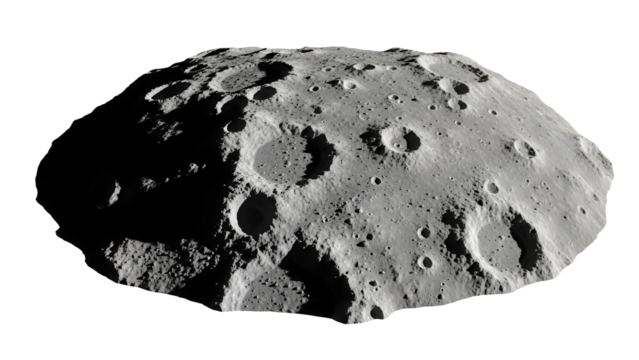 Detailed asteroid surface with craters PNG isolated on transparent background, celestial body for space exploration and science projects