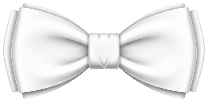 White satin bow tie isolated on transparent background for formal wear accessory